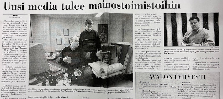 Eikä sovi unohtaa sitä, että kaikki tarvitsevat mainostoimistopalveluita. Siksipä Laakso onnistui luomaan loistavia kumppanuussuhteita koulutuksen kautta ja pääsi mm. tekemään koko porukalle ensimmäiset internet-sivut, jotka eivät olleet kovin yleisiä yrityksillä tuohon aikaan.